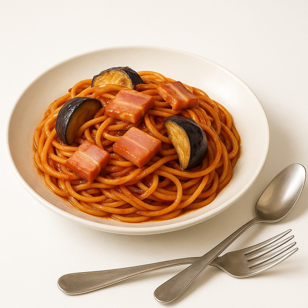 | 明太子バター風味パスタ(約 80mg) | ナスとベーコンのトマトパスタ(約 40mg) | 明太子 40g分を野菜主体にかえるだけで約2割減 |